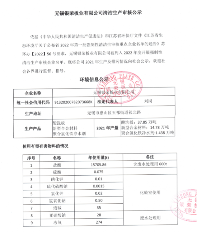 无锡银荣板业无限公司洁净出产考核公示